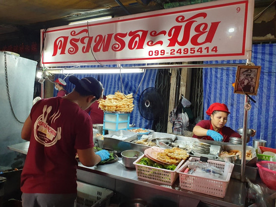 ร้านที่สาม บัวบกพามากินย่านเยาวราช ตั้งอยู่ในถนนแปรงนาม นั่นก็คือ แถ่น แทน แท๊น ร้านครัวพรละมัย นั่นเอง...เอง...เอง...เอง เดิมร้านนี้มีชื่อว่าสุกี้นายหนวด เมนูก็ตามชื่อร้านเลยจ้า ขายแต่สุกี้อย่างเดียว อ๊ะ ๆ แต่อย่าเพิ่งส่ายหน้าหนีบัวบกไป! กลับมาก่อนนน ปัจจุบันนี้มีเมนูหลายอย่างแล้วค่า ทั้งก๋วยเตี๋ยวคั่ว หอยทอด ออส่วน และราดหน้าภูเขาไฟที่เป็นไฮไลท์ของที่นี่ โดยตอนมาเสิร์ฟจะมาเป็นก๋วยเตี๋ยวกับเครื่องเคียงในกระทะร้อน แล้วทางร้านก็จะเทน้ำราดหน้าลงต่อหน้าบัวบก ให้ความเป็นกิมมิคของเมนูที่มีความอลัง เดือดปุด ๆ เหมือนภูเขาไฟของจริง ต่อด้วยการเจาะไข่แดงให้ลาวาไหลออกมา อ๊าย บัวบกฟินตายไปเลยจย้า ลืมบอกไปค่ะ เมนูนี้สามารถเลือกระดับความกรอบของเส้นได้ด้วยน้า ใครชอบกรอบ ๆ ต้องมาตำด่วน!